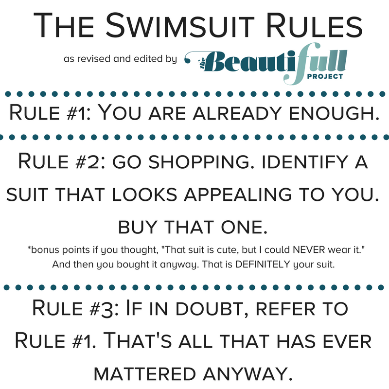 Because the sun finally came out and it's pretty likely that most of us will have a run-in with a beach or a pool or a Kohl's dressing room, and we will find ourselves confronted, once again, with "the rules".